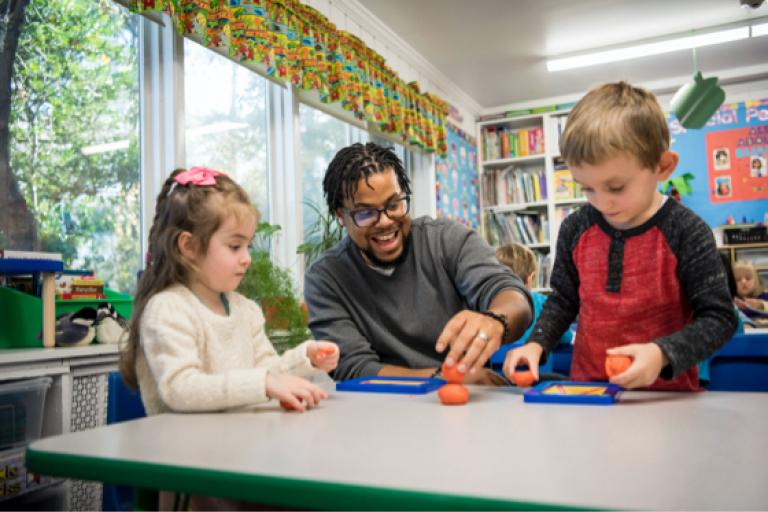 We know that teacher demonstration and student imitation are essential to Pre-K learning. Throughout the curriculum, children learn on their own as well as with adult demonstration. Activities are structured in whole class, small group, and individually to maximize teaching and learning.