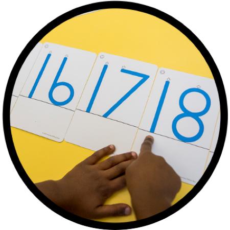 Active lessons promote number recognition, formation, and counting. Students manipulate and count objects in the room, sing songs that reinforce number concepts, and participate in different activities that explore numbers. They also use fine-motor skills to explore number activities, trace numbers, and manipulate objects as they count them.