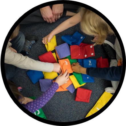 Students learn social-emotional and readiness skills using hands-on methods that make the experience meaningful. They develop fine motor skills, learn to hold a crayon, and use Wood Pieces to learn body parts, position words, and the vocabulary to describe capital letters and numbers.