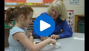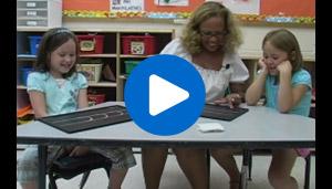 Using the Slate chalkboard, Jan shows Charlie how to form a K with Wet-Dry-Try. The accompanying letter story helps Charlie remember each step.