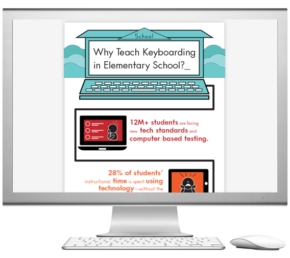 Access the Why Teach Keyboarding infographic to discover the importance and benefits of teaching keyboarding in elementary school classrooms.