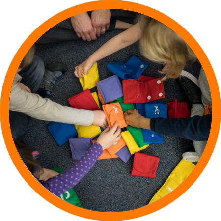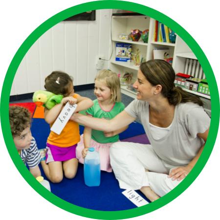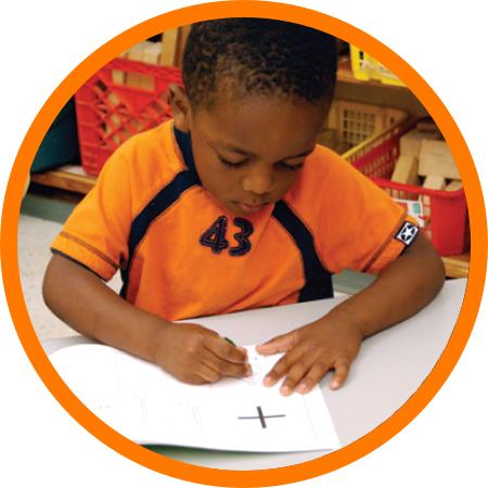 Students are taught a foundation in letter recognition and letter sound recognition that begins to build reading and writing skills. These skills support each other and develop in tandem. This learning area shows students that print has meaning and they can use it to express themselves.