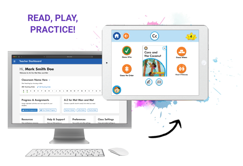 By combining the teacher dashboard with a student app, teachers can enliven readings of the student letter books, launch playful interactive experiences, and refine literacy skills through practice.