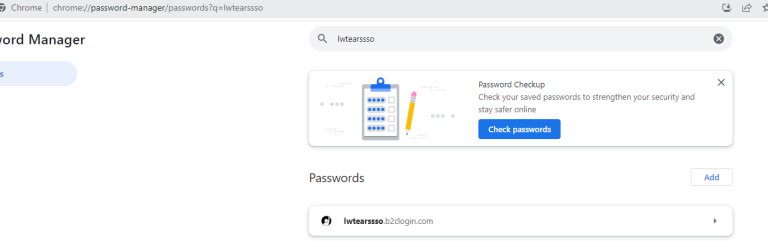 In Chrome, type in lwtearssso in the search box to find the listing for lwtearssso.b2clogin.com